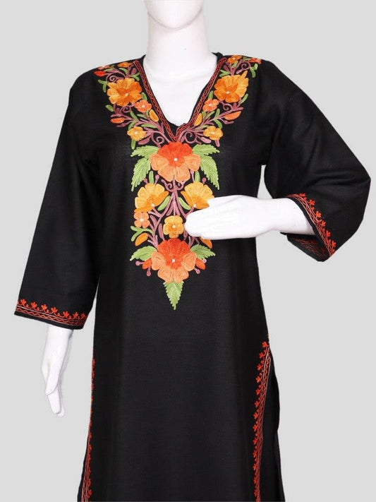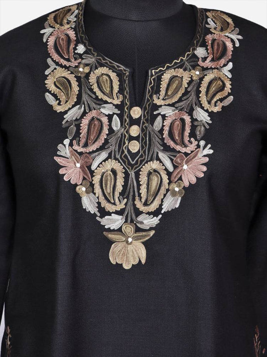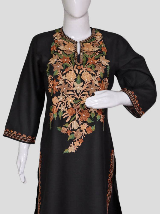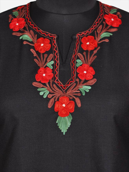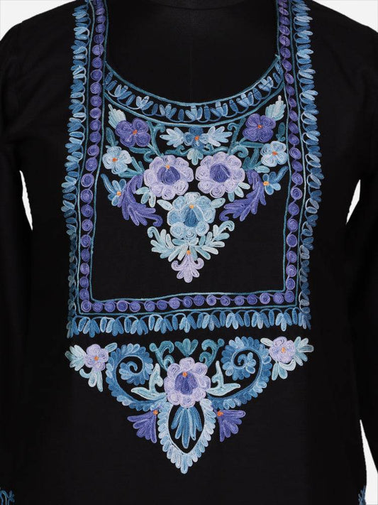 nAARI Classic Black Kashmiri Aari Embroidered Cotton Kurti