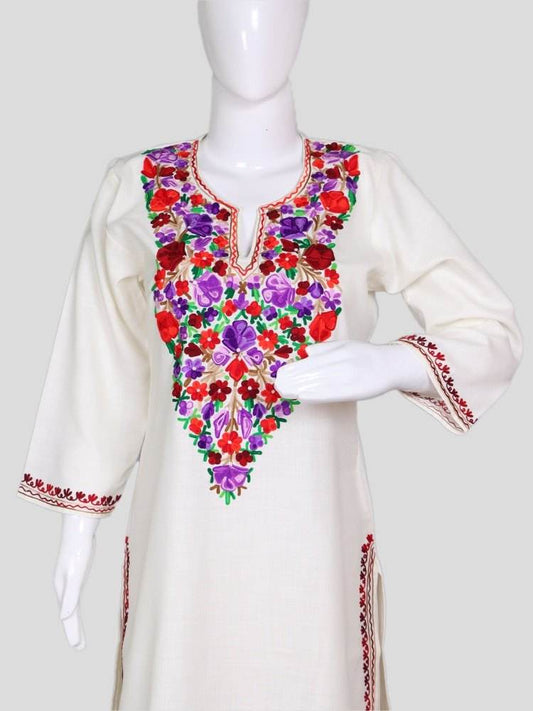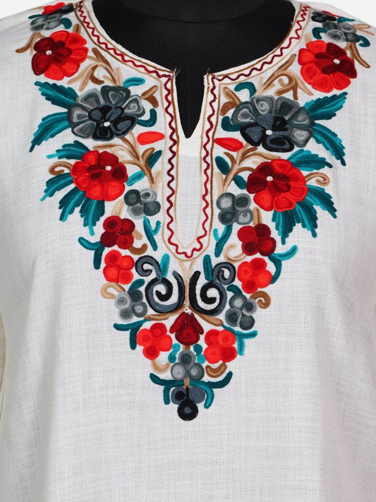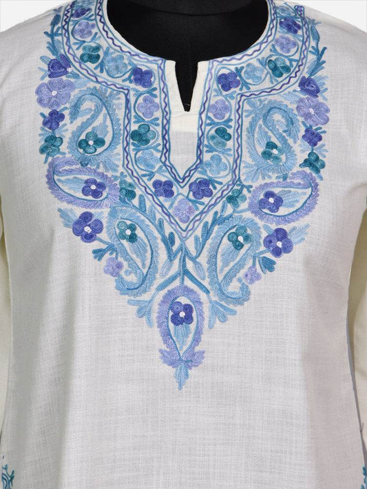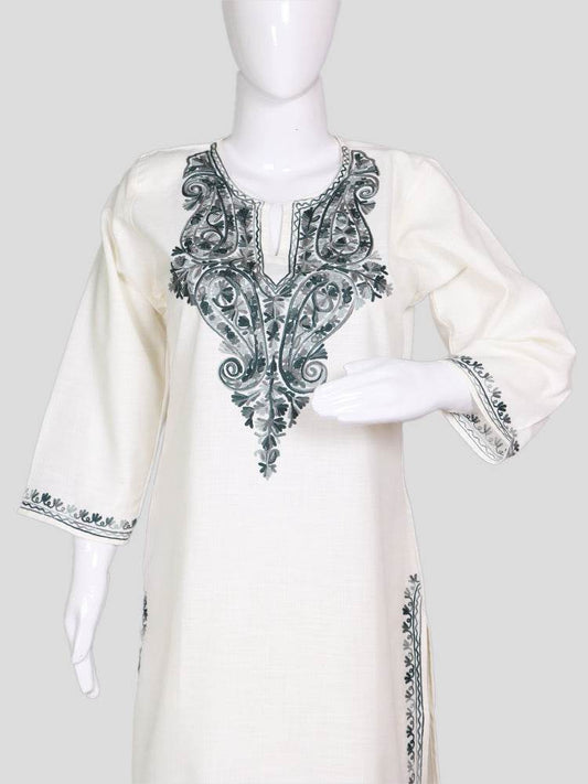 nAARI Soft Cream Kashmiri Aari Embroidered Cotton Kurti