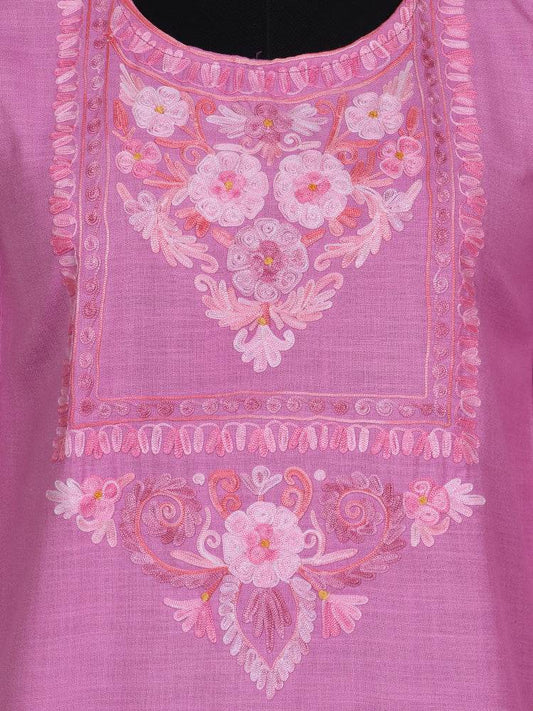 nAARI Tulip Pink Kashmiri Aari Embroidered Cotton Kurti