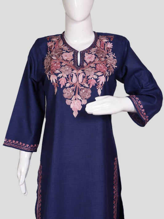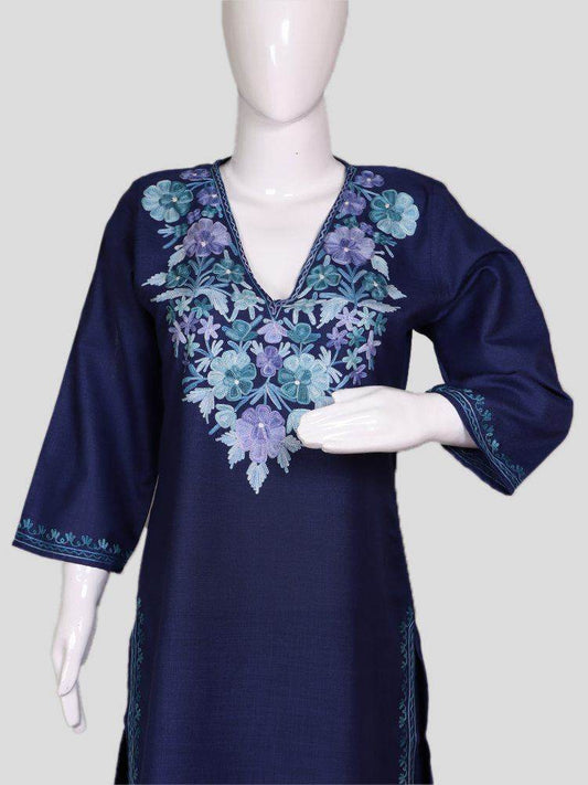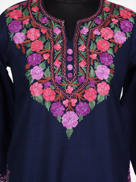 nAARI Classic Navy Blue Kashmiri Aari Embroidered Cotton Kurti
