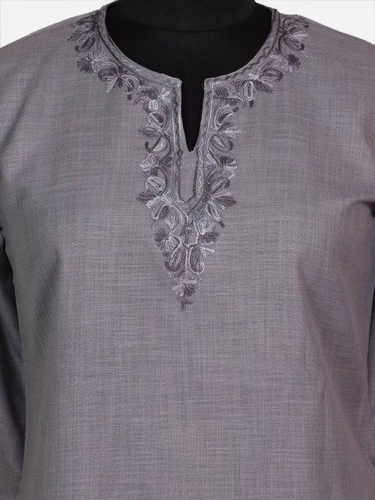 nAARI Smoke Grey Kashmiri Aari Embroidered Cotton Kurti