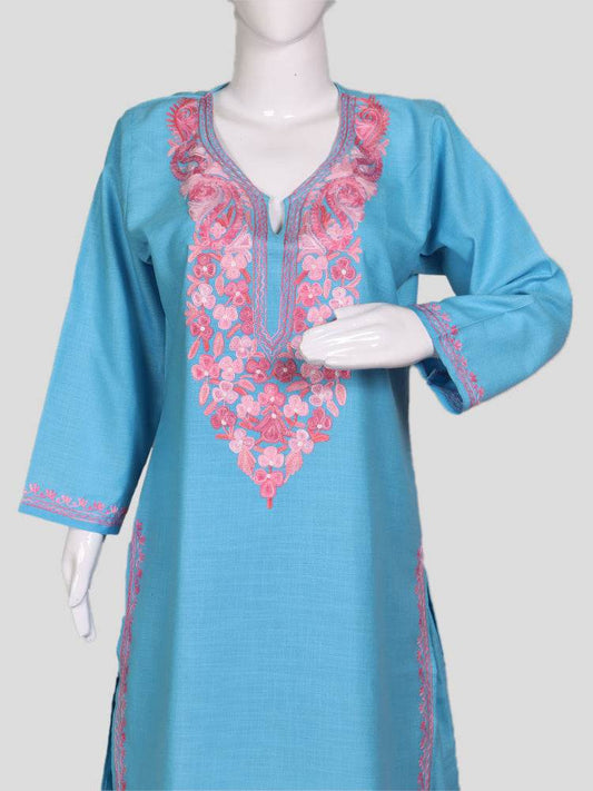 nAARI Kashmiri Aari Embroidered Sky Blue Cotton Coord Set