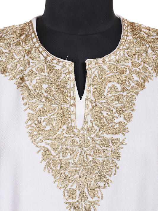 Off-White Cashmilon Wool Zari Embroidered Kashmiri Pheran - Pehnava