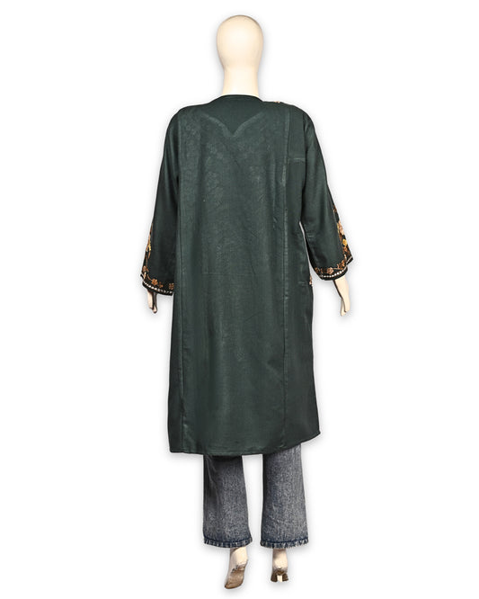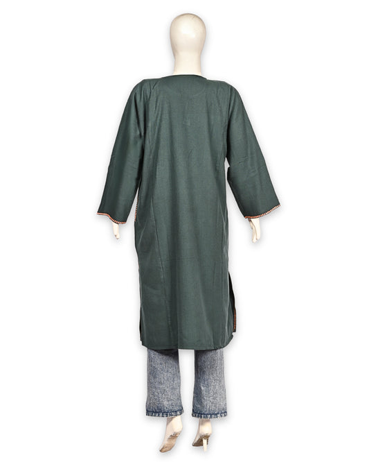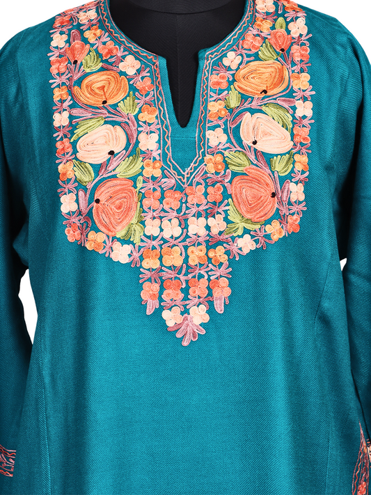 Forest Green Cashmilon Wool Aari Embroidered Kashmiri Pheran - Pehnava