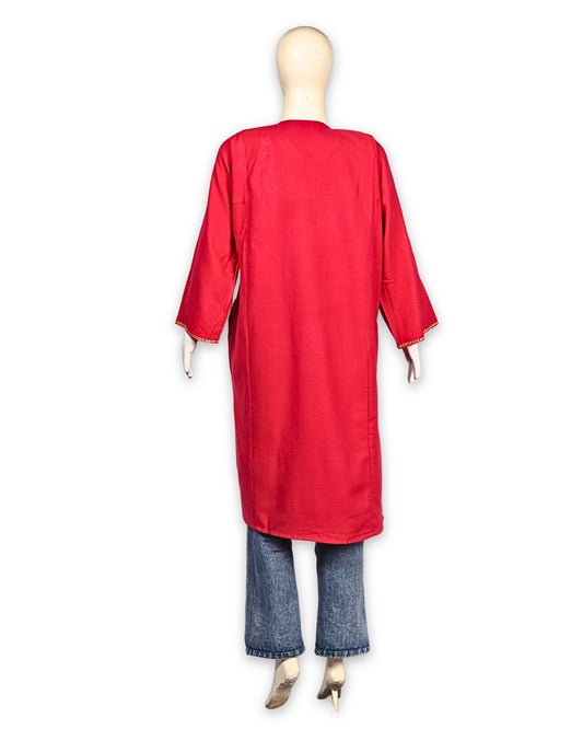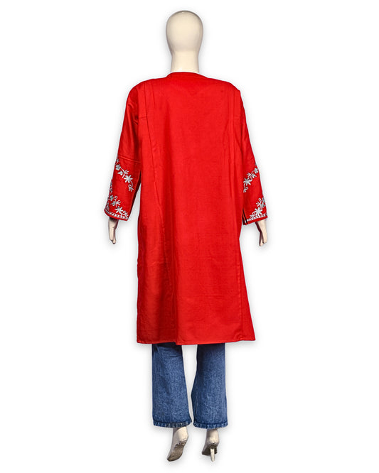 Scarlet Red Cashmilon Wool Zari Embroidered Kashmiri Pheran - Pehnava