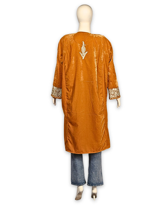 Mustard Yellow Makhmal Zari Embroidered Kashmiri Pheran - Pehnava