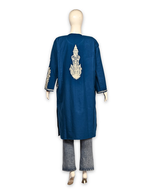 Royal Blue Cashmilon Wool Aari Embroidered Kashmiri Pheran - Pehnava
