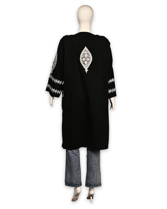Jet Black Cashmilon Wool Zari Embroidered Kashmiri Pheran - Pehnava