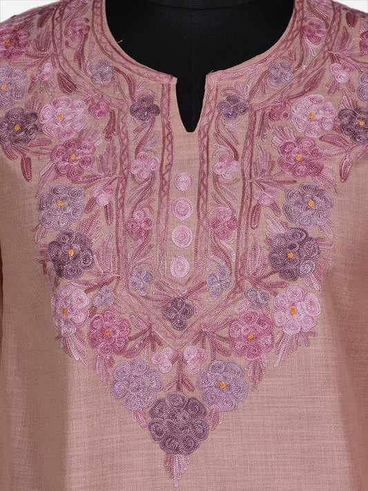 nAARI Rosy Brown Kashmiri Aari Embroidered Cotton Kurti