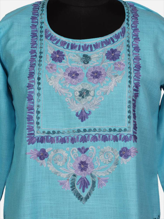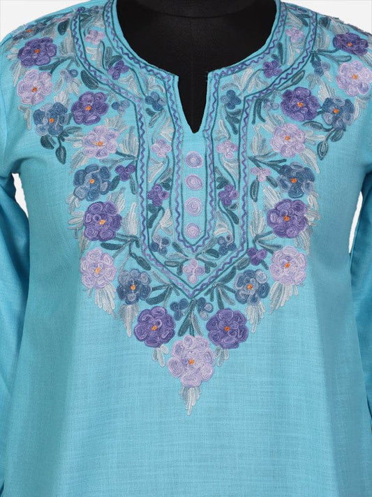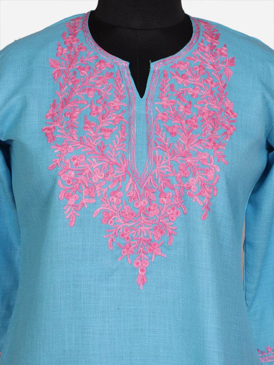 nAARI Ferozi Blue Kashmiri Aari Embroidered Cotton Kurti