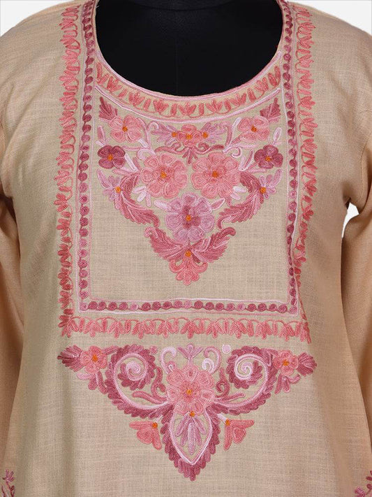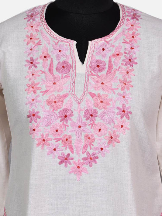 nAARI Soft Cream Kashmiri Aari Embroidered Cotton Kurti