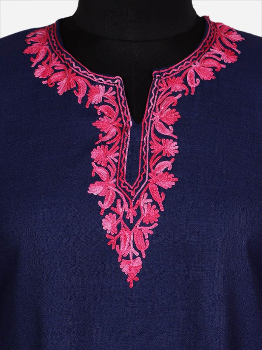 nAARI Classic Navy Blue Kashmiri Aari Embroidered Cotton Kurti