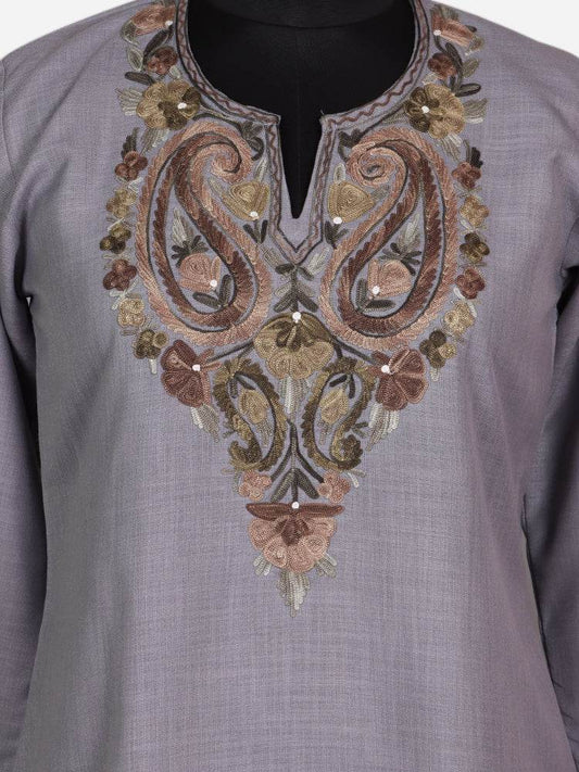 nAARI Cool Grey Kashmiri Aari Embroidered Cotton Kurti