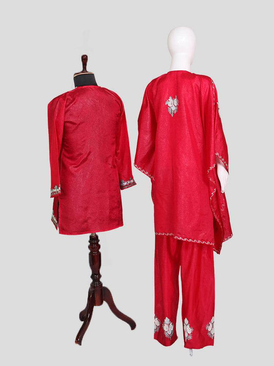 Zariya Cherry Red Silk Twins - Kaftan Set & Kurti