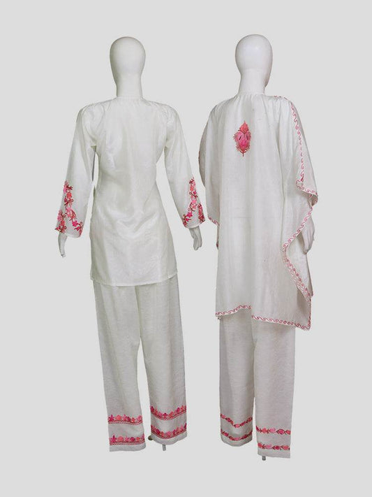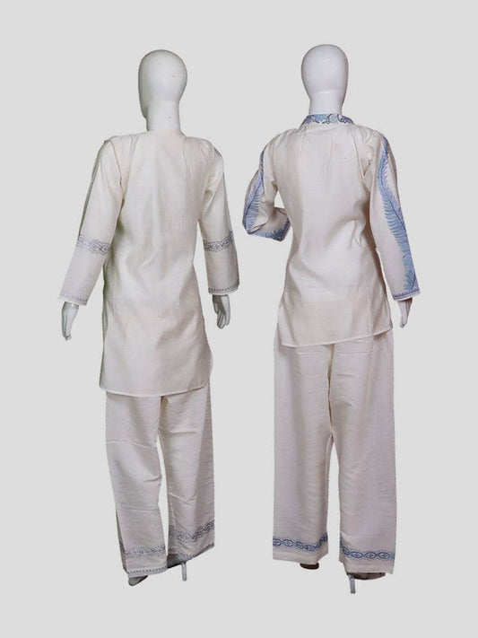 Zariya Cream-White Silk Twins - Zari Kurti Set & Aari Kaftan Set